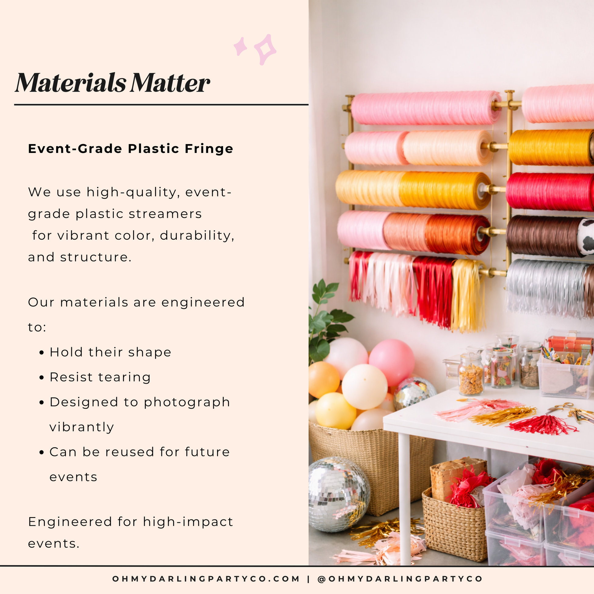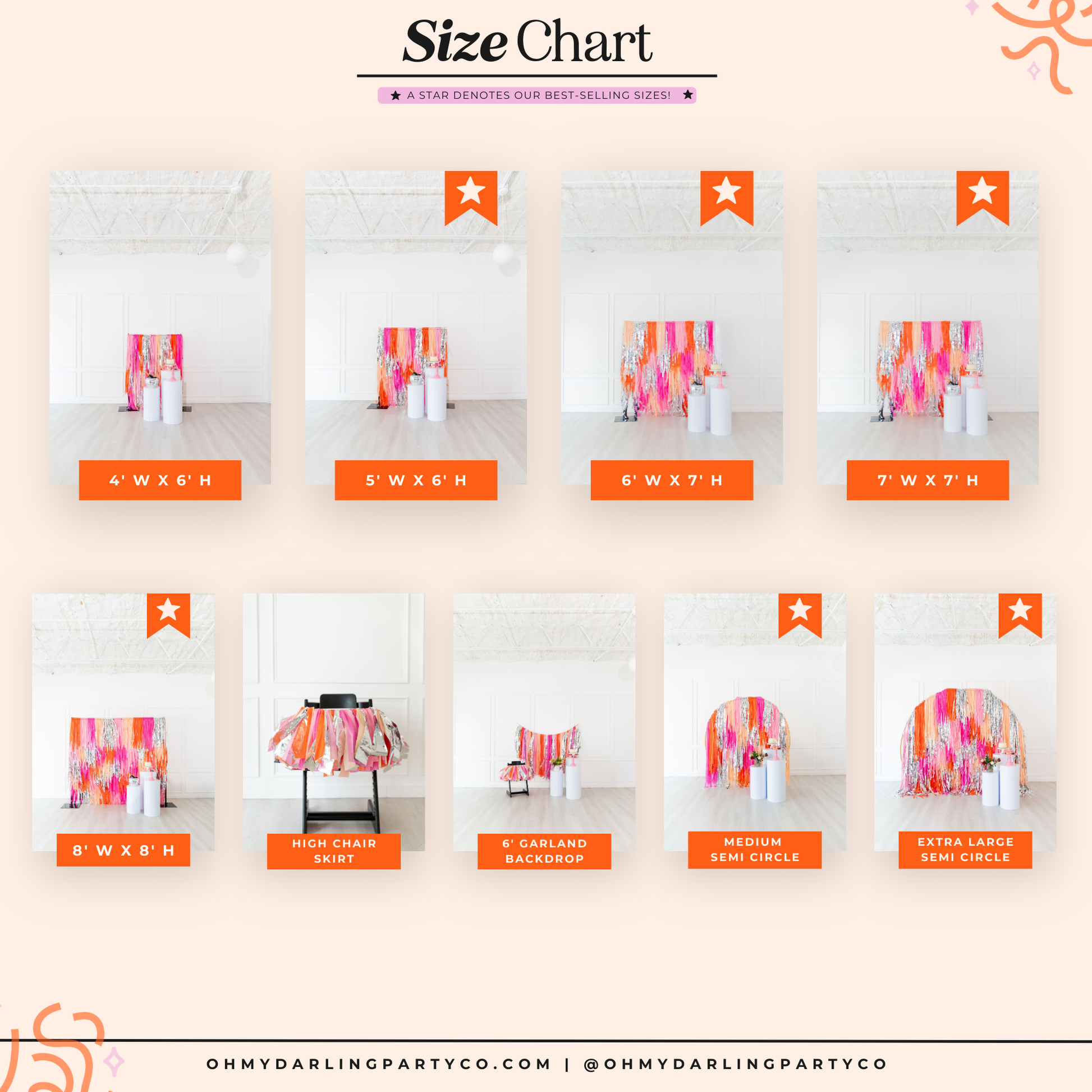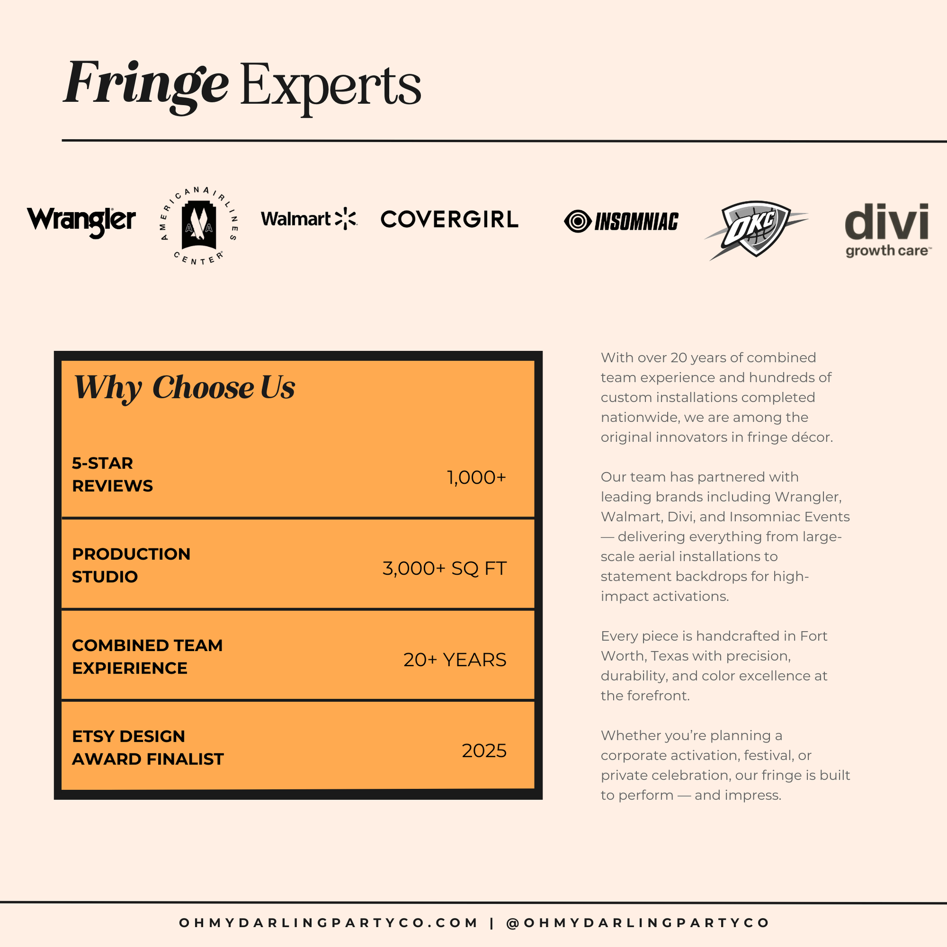 Returns: While we don’t take returns on any of our fringe products, we totally get that sometimes things don’t go as planned. Just shoot us an email at care@ohmydarlingpartyco.com, and our sparkling customer service team will swoop in to save the day. We’ve got your back every step of the way. 💖